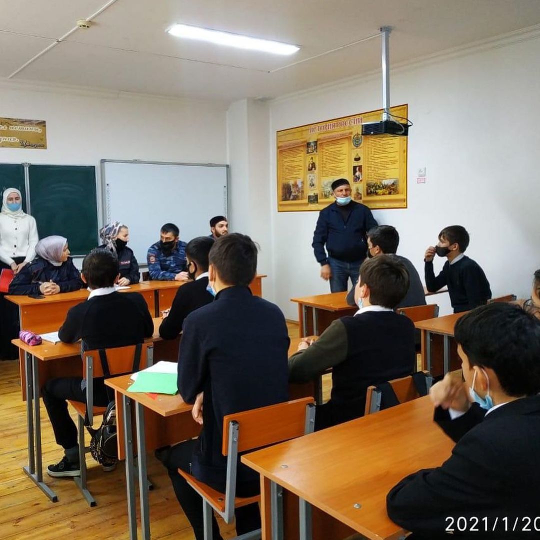 20.01.202120 января в МБОУ "Илсхан-Юртовская ОШ" побывали с визитом сотрудники ОПДН ОМВД РОсси по курчаловескому району. Лни провели с ребятами содержательную и интересную беседу. Речь шла о правах и обязанностях подростка, об опасностях и проблемах, которые чаще всего возникают в этом возрасте.