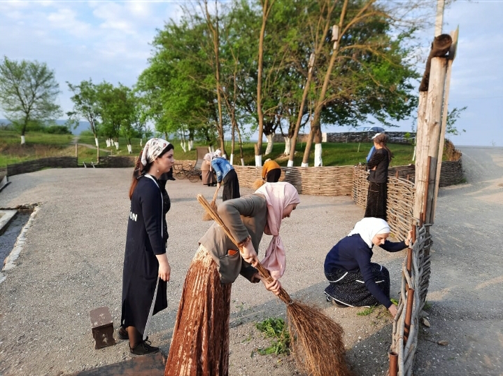 Начался субботник с уборки и озеленения пришкольной территории. В конце рабочего дня весь коллектив собрался за селом для наведения чистоты в излюбленном месте отдыха жителей Илсхан - Юрта.