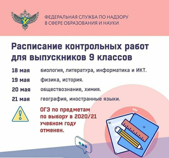 Проведение основного государственного экзамена (ОГЭ) по предметам по выбору в 2020/21 учебном году было отменено, вместо этих экзаменов для девятиклассников будут проведены контрольные работы.