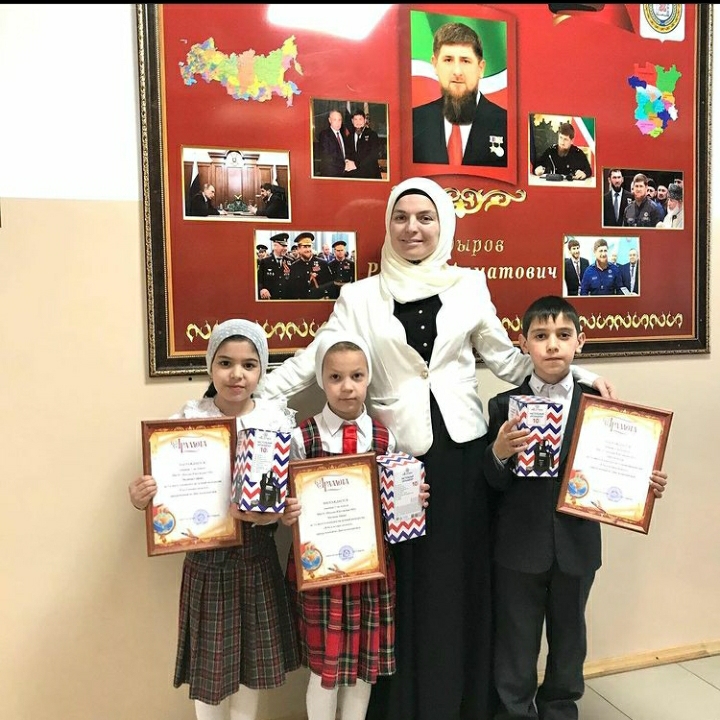 3 место - Ойбуев Исхак (4 "А" класс), Медиева Сафият (3 "А" класс), Митаева Айшат (2 "А" класс).