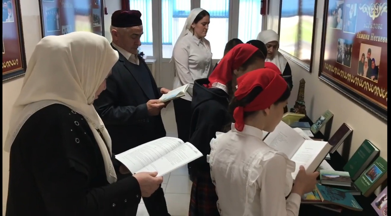 Нохчийн меттан денна лерина книгийн гайтам д1абаьхьира Илсхан - Юьртан дехийлан коьртачу декъан ишколан библиотекаро Эсилавеа Марха Исаевнас.