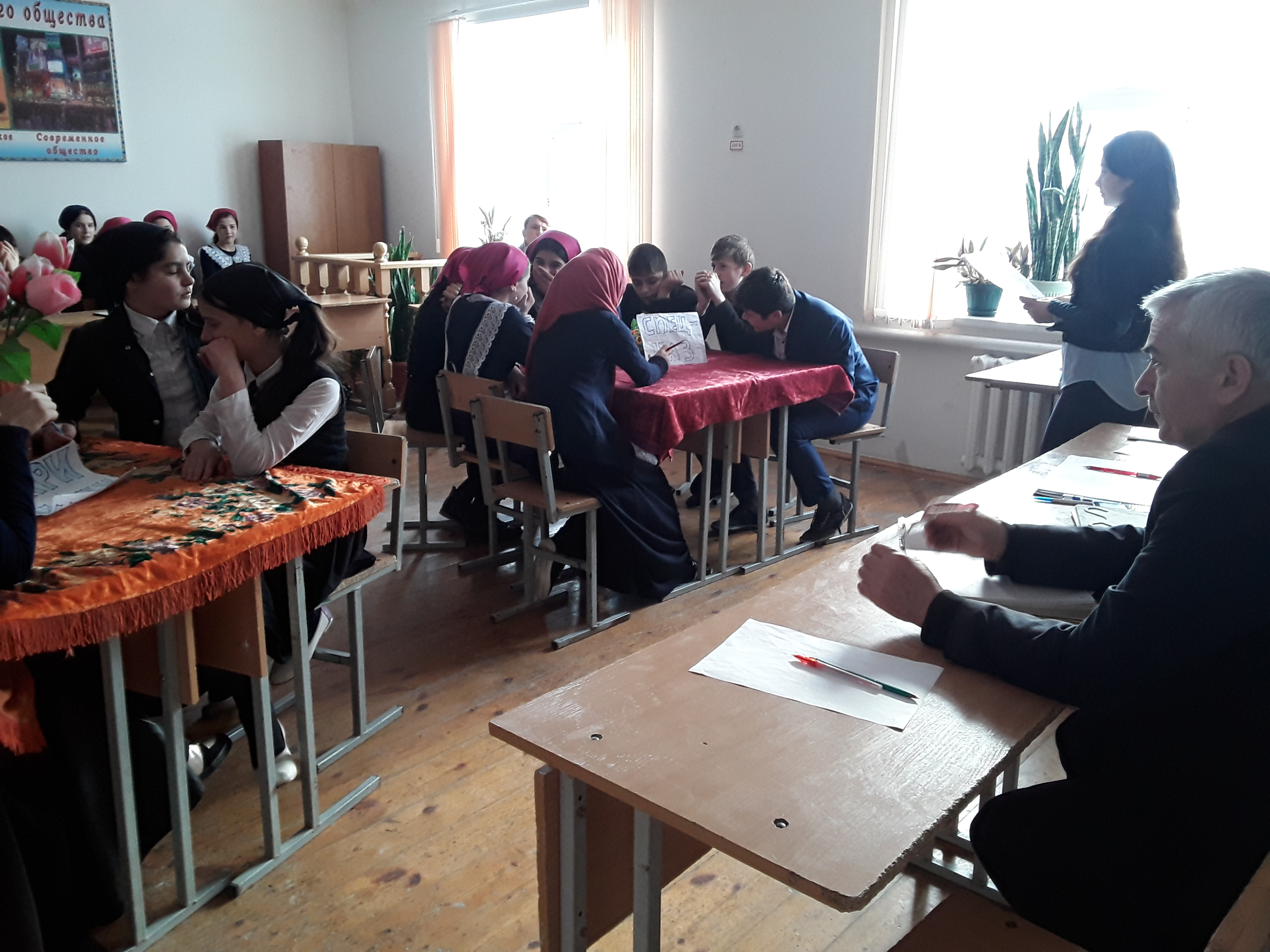 15.02.2017В рамках реализации плана недели молодых педагогов Юнусова Замира Магомедовна провела исторический брейн-ринг "Битва эрудитов" с учащимися 8 «а» и 8 «б» класса. Мероприятие было хорошо организовано и учащиеся активно принимали участие в нем.