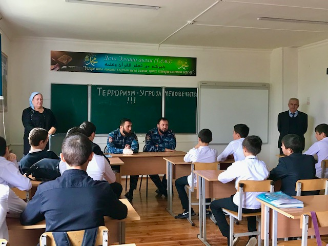 Приглашенные гости из полиции и МЧС говорили о трагедиях в Беслане, Казани, Перми и других местах, и что почва для подобного рода проявлениям терроризма закладывается идеологами терроризма распространением в интернете информаций экстремистского и террористического характера, способствующие обману, оболваниванию и привлечению в свою преступную среду молодежи. Сотрудники полиции и МЧС подчеркивали, что всякая информация в интернете контролируется и обрабатывается соответствующими службами, даже мелкие и незначительные проявления сочувствия, согласия, лайкования экстремизму и терроризму фиксируются и виновные привлекаются к строгой ответственности. Они порекомендовали ребятам использовать интернет только в учебных целях, предупредили ребят о необходимости соблюдения правил поведения в школе и что в противном случае систематические нарушители дисциплины и порядка будут поставлены на учет в ПДН, с ними и с их родителями будет проводится соответствующая работа. Ребятам порекомендовали также сообщать в полицию о любых значимых правонарушениях, беззаконии, проявлениях экстремизма и терроризма.