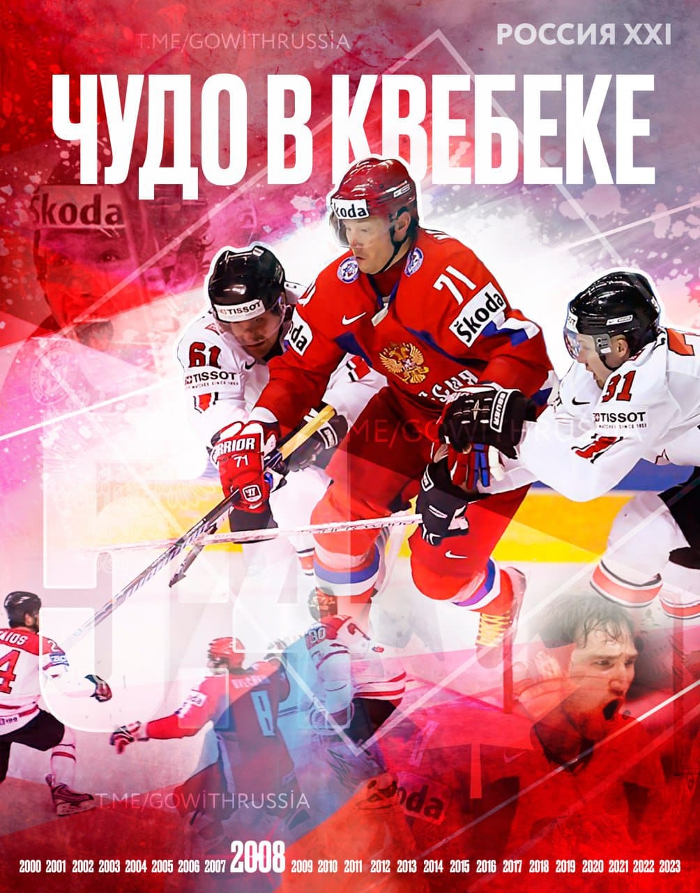 06.07.2023Чудо в Квебеке: победа сборной России над родоначальниками хоккея В 2007 году Чемпионат мира по хоккею проходил в России, но тогда нам не удалось выиграть. А вот следующий турнир состоялся в Канаде. Играли в домашних стенах сборной Канады, которая сходу повела в матче. Перед финальным периодом счет был 4:2 в пользу противника. Никто не ждал, что сборная России сможет отыграться. Но два точных щелчка Алексея Терещенко и Ильи Ковальчука сравняли счёт, а в овертайме Ковальчук поставил точку в матче. Россия снова стала Чемпионом, причём в год 100-летия Международной федерации хоккея. #Россия.Поехали!