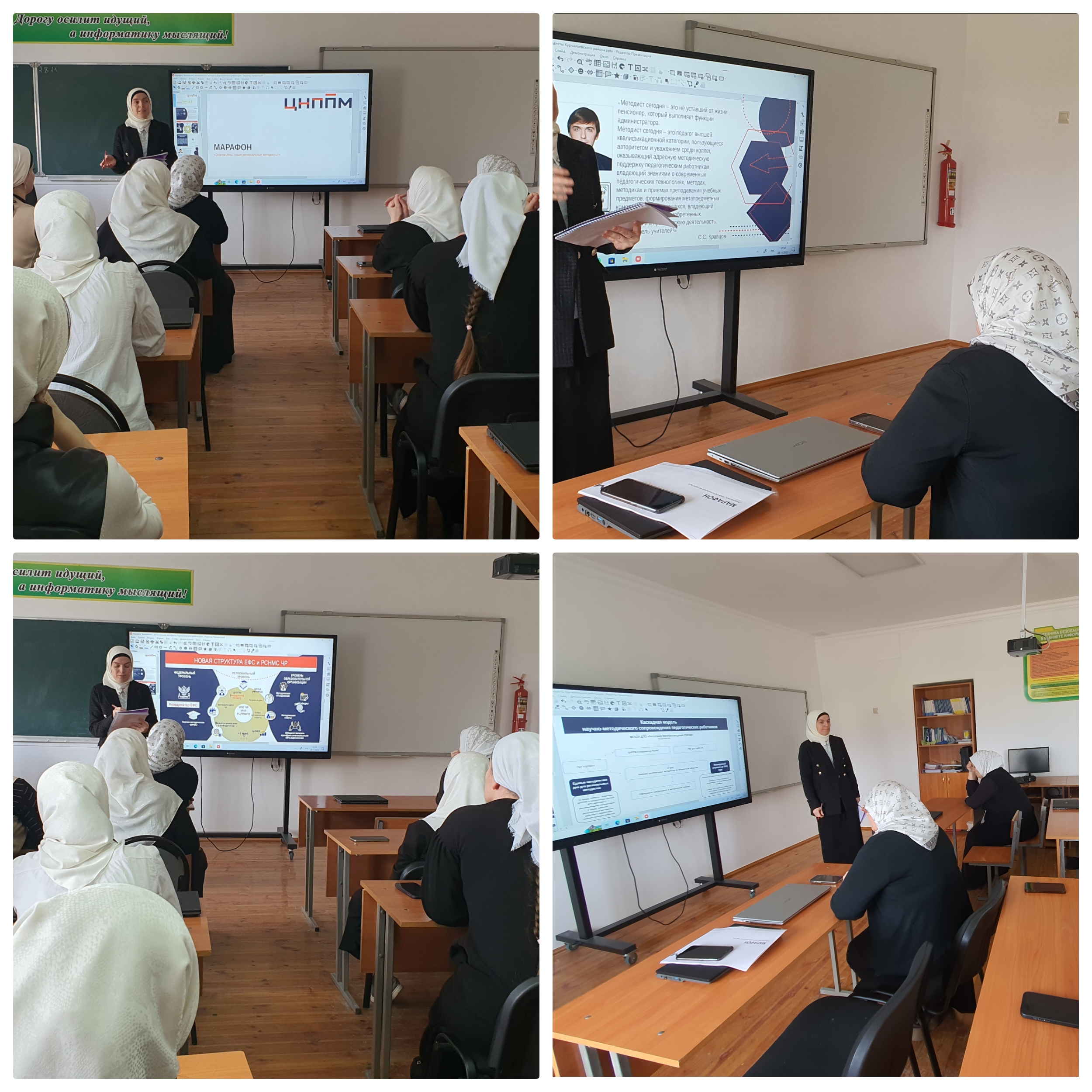25.11.2023В МБОУ "Илсхан-Юртовская ОШ " в рамках Года педагога и наставника был проведен марафон «Знакомьтесь: Наши региональные методисты!» Марафон проведен в соответствии с письмом ГБУ ДПО «ИРО ЧР» с целью обеспечения функционирования единой федеральной системы научно-методического сопровождения педагогических работников управленческих кадров Чеченской Республики, утверждённой приказом Министерства образования и науки Чеченской Республики от 23 декабря 2022 г. 1864-п.