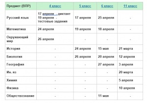 График проведения ВПР в 4,5,6 и 11 классах в 2018 году.