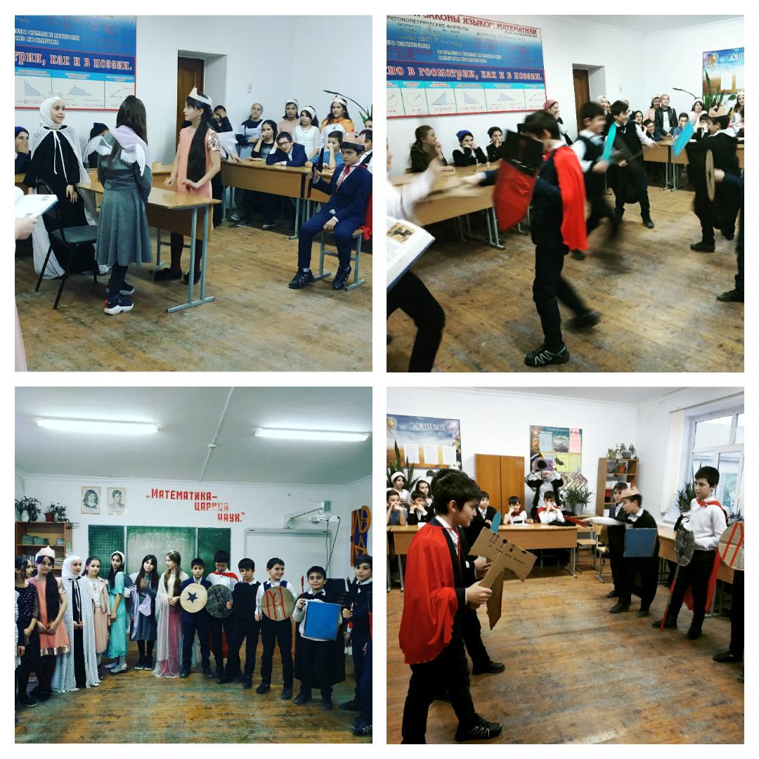 В ходе мергоприятия учащиеся показали сценки: "Мифы о троянской войне" и "Миф о Тесее и Минотавре".