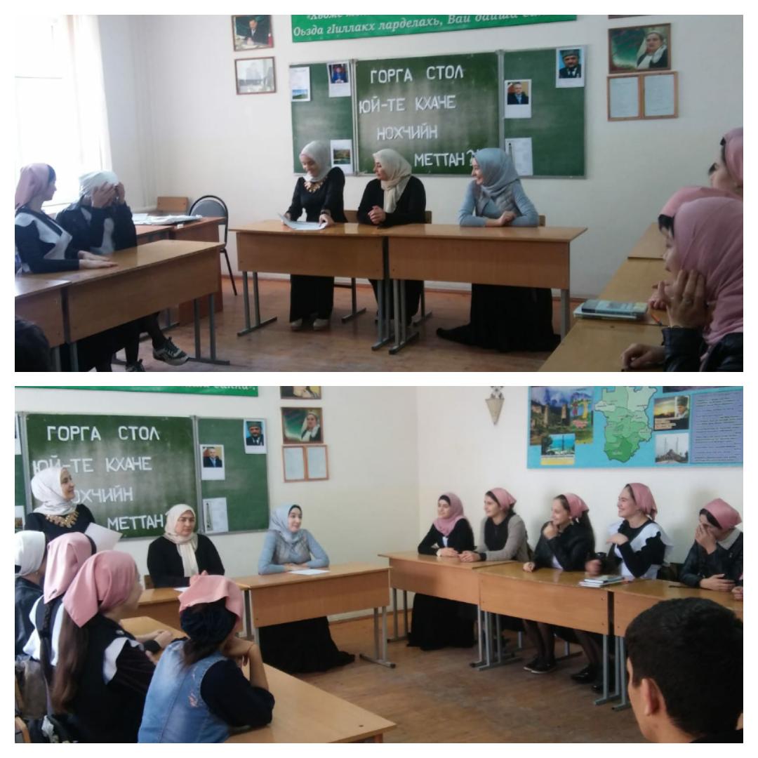 Илсхан-Юьртан дехийлан коьртачу декъан школан 9-чу классан дешархошца д1аяьхьира горга стол "Юй-те кхане Нохчийн меттан?!"